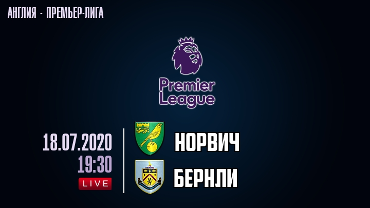 18 июля 2020 года, состоялась онлайн трансляция футбольного матча между футбольным клубом Норвич и футбольным клубом Бернли, проходящего в рамках Премьер лиги Англии.