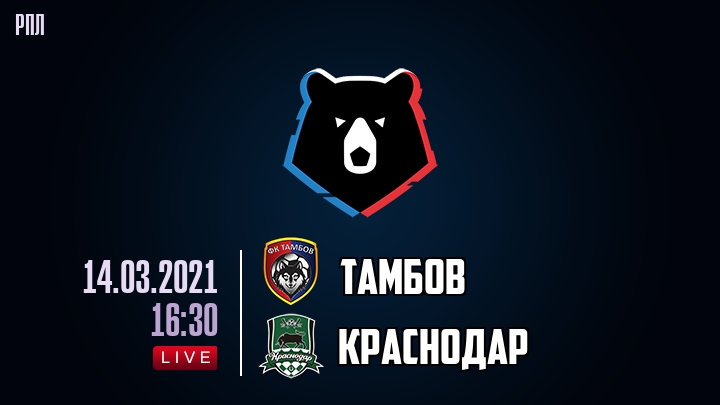 14 марта 2021 года, состоялась онлайн трансляция футбольного матча между футбольным клубом Тамбов и футбольным клубом Краснодар, проходящего в рамках чемпионата РПЛ.
