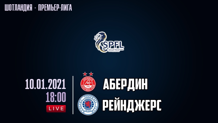 10 января 2021 года, состоялась онлайн трансляция футбольного матча между футбольным клубом Абердин и футбольным клубом Рейнджерс, проходящего в рамках Премьер лиги Шотландии.