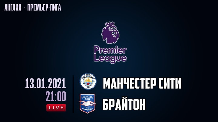 13 января 2021 года, состоялась онлайн трансляция футбольного матча между футбольным клубом Манчестер Сити и футбольным клубом Брайтон, проходящего в рамках Премьер лиги Англии.