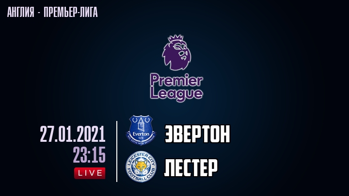 27 января 2021 года, состоялась онлайн трансляция футбольного матча между футбольным клубом Эвертон и футбольным клубом Лестер, проходящего в рамках Премьер лиги Англии.