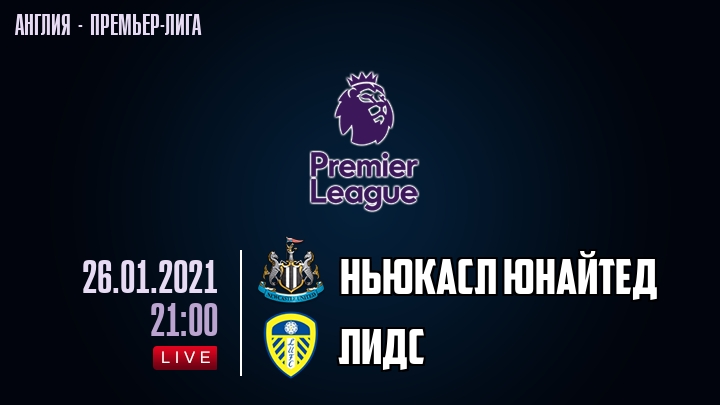 26 января 2021 года, состоялась онлайн трансляция футбольного матча между футбольным клубом Ньюкасл Юнайтед и футбольным клубом Лидс, проходящего в рамках Премьер лиги Англии.