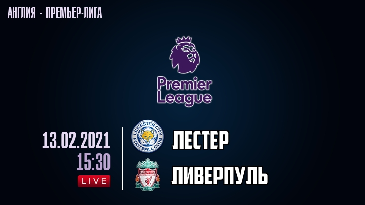 13 февраля 2021 года, состоялась онлайн трансляция футбольного матча между футбольным клубом Лестер и футбольным клубом Ливерпуль, проходящего в рамках Премьер лиги Англии.