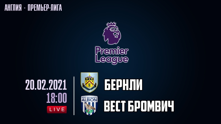 20 февраля 2021 года, состоялась онлайн трансляция футбольного матча между футбольным клубом Бернли и футбольным клубом Вест Бромвич, проходящего в рамках Премьер лиги Англии.