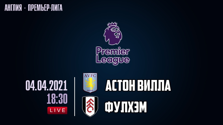 4 апреля 2021 года, состоялась онлайн трансляция футбольного матча между футбольным клубом Астон Вилла и футбольным клубом Фулхэм, проходящего в рамках Премьер лиги Англии.