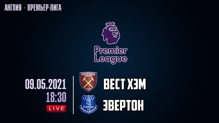 9 мая 2021 года, состоялась онлайн трансляция футбольного матча между футбольным клубом Вест Хэм и футбольным клубом Эвертон, проходящего в рамках Премьер лиги Англии.