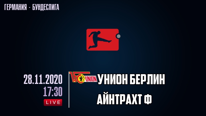 28 ноября 2020 года, состоялась онлайн трансляция футбольного матча между футбольным клубом Унион Берлин и футбольным клубом Айнтрахт Ф, проходящего в рамках Бундеслиги Германии.