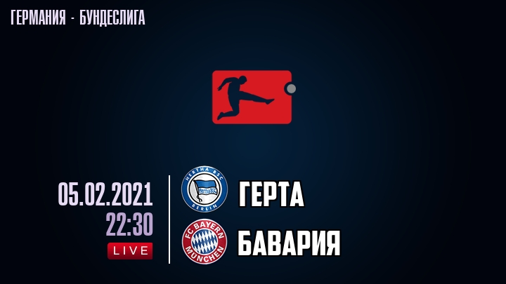 5 февраля 2021 года, состоялась онлайн трансляция футбольного матча между футбольным клубом Герта и футбольным клубом Бавария, проходящего в рамках Бундеслиги Германии.
