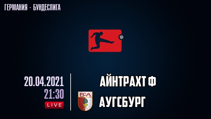 20 апреля 2021 года, состоялась онлайн трансляция футбольного матча между футбольным клубом Айнтрахт Ф и футбольным клубом Аугсбург, проходящего в рамках Бундеслиги Германии.