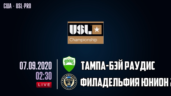 7 сентября 2020 года, состоялась онлайн трансляция футбольного матча между футбольным клубом Тампа-Бэй Рудис и футбольным клубом Филадельфия Юнион, проходящего в рамках Чемпионшипа США - USL-pro.