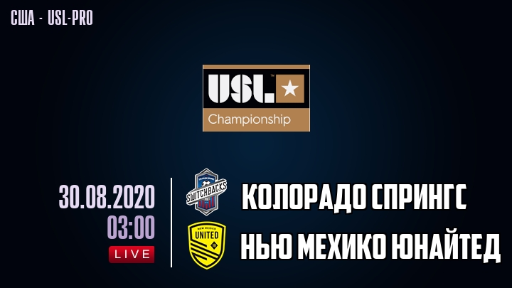 30 августа 2020 года, состоялась онлайн трансляция футбольного матча между футбольным клубом Колорадо Спрингс и футбольным клубом Нью Мехико Юнайтед, проходящего в рамках Чемпионшипа США - USL-pro.