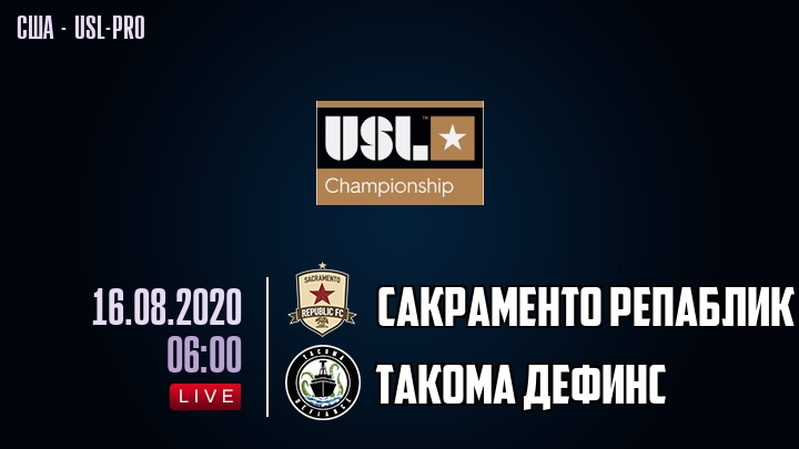 16 августа 2020 года, состоялась онлайн трансляция футбольного матча между футбольным клубом Сакраменто Репаблик и футбольным клубом Такома Дефинс, проходящего в рамках Чемпионшипа США - USL-pro.
