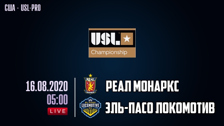 16 августа 2020 года, состоялась онлайн трансляция футбольного матча между футбольным клубом Реал Монаркс и футбольным клубом Эль-Пасо Локомотив, проходящего в рамках Чемпионшипа США - USL-pro.