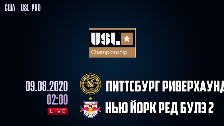 9 августа 2020 года, состоялась онлайн трансляция футбольного матча между футбольным клубом Питтсбург Риверхаундс и футбольным клубом Нью Йорк Ред Булз, проходящего в рамках Чемпионшипа США - USL-pro.