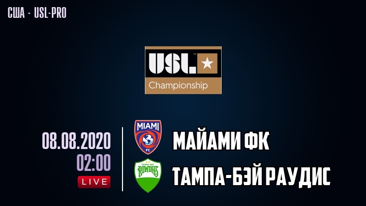 На сегодня в турнирной таблице Чемпионшипа США - USL-pro Майами ФК занимает 1-е место, а Тампа-Бэй Рaудис занимает 1-е место .