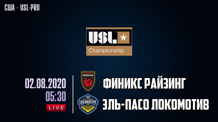 2 августа 2020 года, состоялась онлайн трансляция футбольного матча между футбольным клубом Финикс Райзинг и футбольным клубом Эль-Пасо Локомотив, проходящего в рамках Чемпионшипа США - USL-pro.