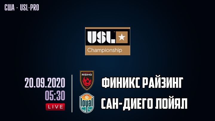 20 сентября 2020 года, состоялась онлайн трансляция футбольного матча между футбольным клубом Финикс Райзинг и футбольным клубом Сан-Диего Лойял, проходящего в рамках Чемпионшипа США - USL-pro.