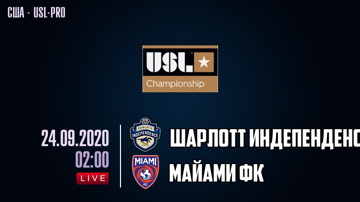 На сегодняшний день в турнирной таблице Чемпионшипа США - USL-pro Шарлотт Индепенденс занимает 1-е место, а Майами ФК занимает 1-е место .