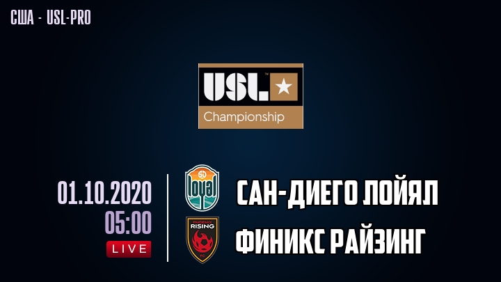 На сегодняшний день в турнирной таблице Чемпионшипа США - USL-pro Сан-Диего Лойял занимает 1-е место, а Финикс Райзинг занимает 1-е место .