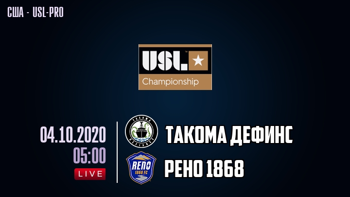 4 октября 2020 года, состоялась онлайн трансляция футбольного матча между футбольным клубом Такома Дефинс и футбольным клубом Рено, проходящего в рамках Чемпионшипа США - USL-pro.