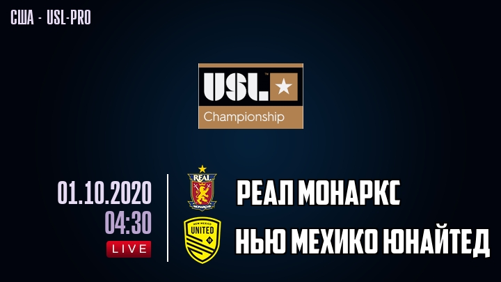 1 октября 2020 года, состоялась онлайн трансляция футбольного матча между футбольным клубом Реал Монаркс и футбольным клубом Нью Мехико Юнайтед, проходящего в рамках Чемпионшипа США - USL-pro.
