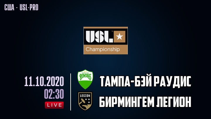 11 октября 2020 года, состоялась онлайн трансляция футбольного матча между футбольным клубом Тампа-Бэй Рудис и футбольным клубом Бирмингем легион, проходящего в рамках Чемпионшипа США - USL-pro.