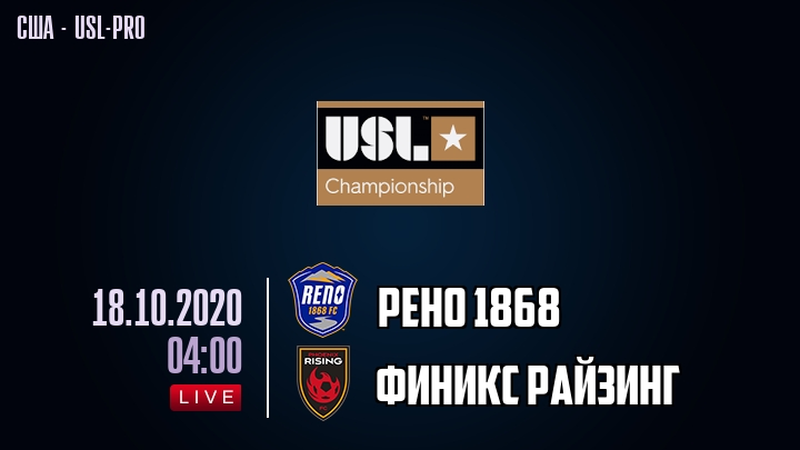 На сегодня в турнирной таблице Чемпионшипа США - USL-pro Рено 1868 занимает 1-е место, а Финикс Райзинг занимает 1-е место .