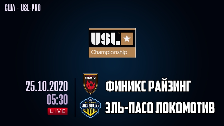 25 октября 2020 года, состоялась онлайн трансляция футбольного матча между футбольным клубом Финикс Райзинг и футбольным клубом Эль-Пасо Локомотив, проходящего в рамках Чемпионшипа США - USL-pro.