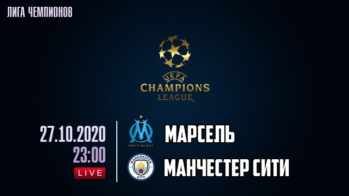 27 октября 2020 года, состоялась онлайн трансляция футбольного матча между футбольным клубом Марсель и футбольным клубом Манчестер Сити, проходящего в рамках Лиги Чемпионов.