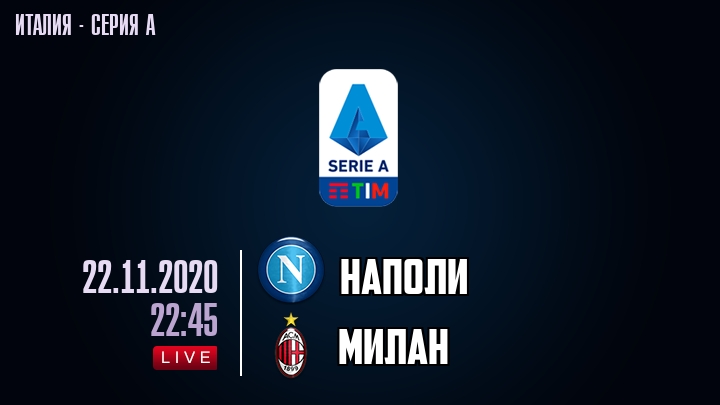 22 ноября 2020 года, мы предлагаем посмотреть онлайн трансляцию футбольного матча между футбольным клубом Наполи и футбольным клубом Милан, проходящего в рамках Серии А чемпионата Италии.