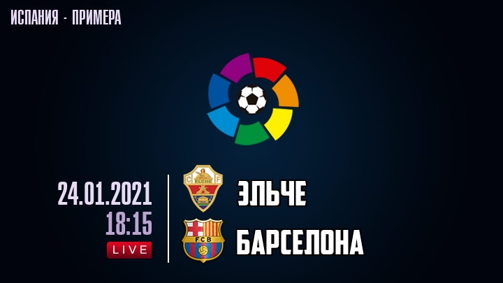 24 января 2021 года, состоялась онлайн трансляция футбольного матча между футбольным клубом Эльче и футбольным клубом Барселона, проходящего в рамках чемпионата Испании.