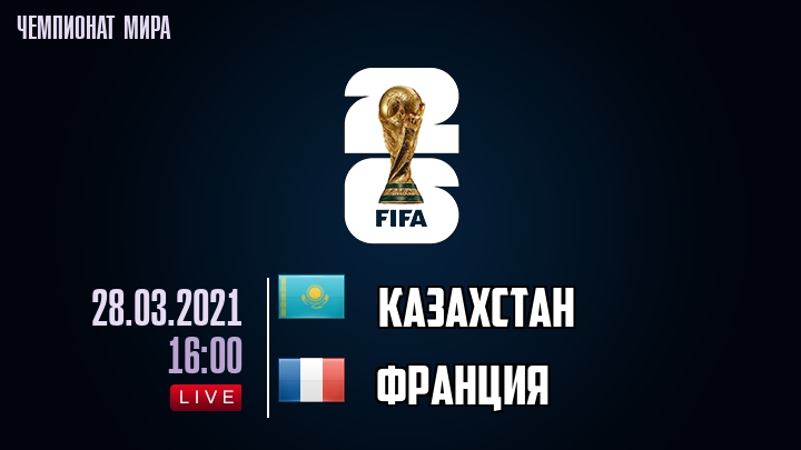 На текущий момент в турнирной таблице Чемпионата мира по футболу Казахстан занимает 1-е место, а Франция занимает 1-е место .