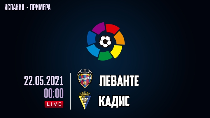 22 мая 2021 года, состоялась онлайн трансляция футбольного матча между футбольным клубом Леванте и футбольным клубом Кадис, проходящего в рамках чемпионата Испании.