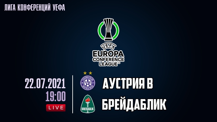 22 июля 2021 года, состоялась онлайн трансляция футбольного матча между футбольным клубом Аустрия В и футбольным клубом Брейдаблик, проходящего в рамках Лиги конференций УЕФА.