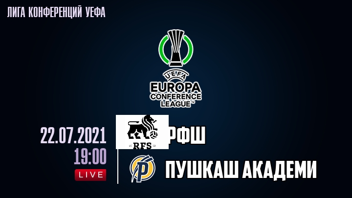 22 июля 2021 года, состоялась онлайн трансляция футбольного матча между футбольным клубом РФШ и футбольным клубом Пушкаш Академи, проходящего в рамках Лиги конференций УЕФА.