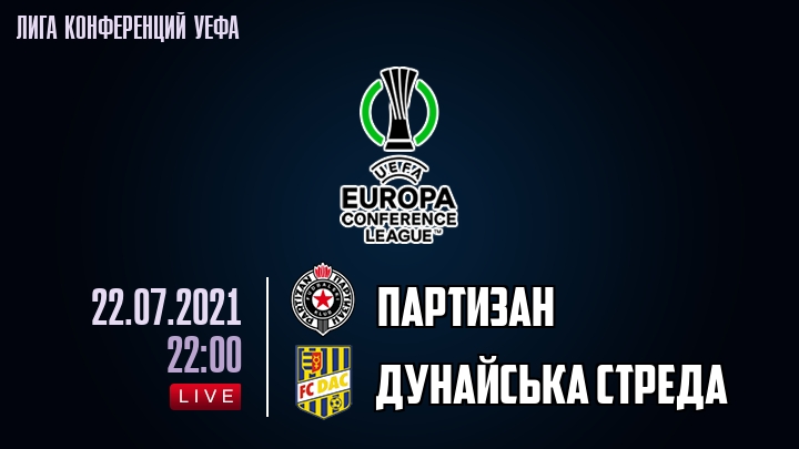 22 июля 2021 года, состоялась онлайн трансляция футбольного матча между футбольным клубом Партизан и футбольным клубом Дунайська Стреда, проходящего в рамках Лиги конференций УЕФА.
