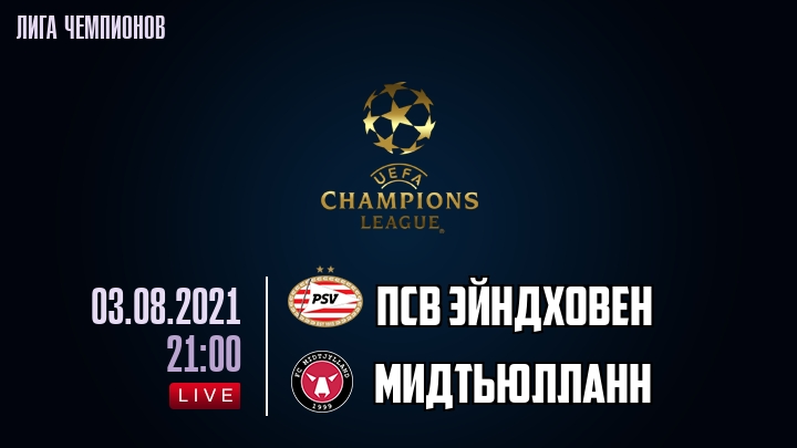 3 августа 2021 года, состоялась онлайн трансляция футбольного матча между футбольным клубом ПСВ Эйндховен и футбольным клубом Мидтьюлланн, проходящего в рамках Лиги Чемпионов.