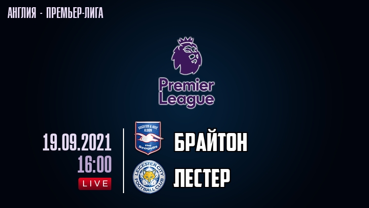 19 сентября 2021 года, состоялась онлайн трансляция футбольного матча между футбольным клубом Брайтон и футбольным клубом Лестер, проходящего в рамках Премьер лиги Англии.