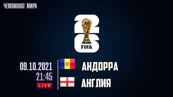 На данный момент в турнирной таблице Чемпионата мира по футболу Андорра занимает 1-е место, а Англия занимает 1-е место .