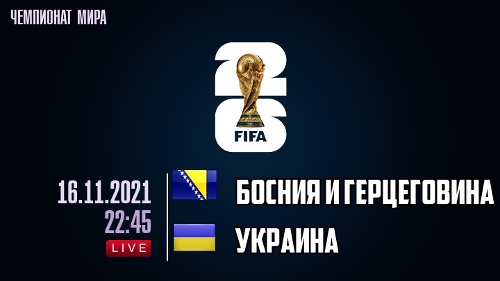 16 ноября 2021 года, мы предлагаем посмотреть онлайн трансляцию футбольного матча между сборной Боснии и Герцеговины и сборной Украины, проходящего в рамках Чемпионата мира по футболу.