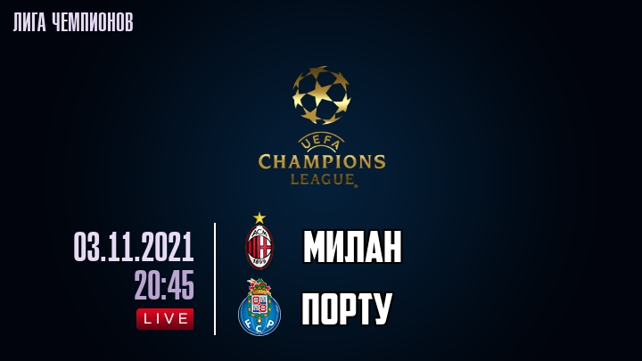 3 ноября 2021 года, состоялась онлайн трансляция футбольного матча между футбольным клубом Милан и футбольным клубом Порту, проходящего в рамках Лиги Чемпионов.