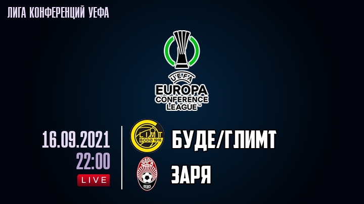 16 сентября 2021 года, состоялась онлайн трансляция футбольного матча между футбольным клубом БудеГлимт и футбольным клубом Заря, проходящего в рамках Лиги конференций УЕФА.