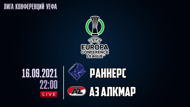 16 сентября 2021 года, состоялась онлайн трансляция футбольного матча между футбольным клубом Раннерс и футбольным клубом АЗ Алкмар, проходящего в рамках Лиги конференций УЕФА.