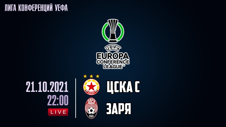 21 октября 2021 года, состоялась онлайн трансляция футбольного матча между футбольным клубом ЦСКА С и футбольным клубом Заря, проходящего в рамках Лиги конференций УЕФА.