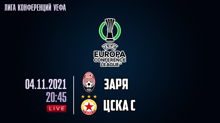 4 ноября 2021 года, состоялась онлайн трансляция футбольного матча между футбольным клубом Заря и футбольным клубом ЦСКА С, проходящего в рамках Лиги конференций УЕФА.