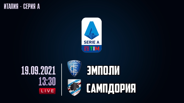 19 сентября 2021 года, состоялась онлайн трансляция футбольного матча между футбольным клубом Эмполи и футбольным клубом Сампдория, проходящего в рамках Серии А чемпионата Италии.