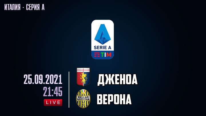 25 сентября 2021 года, состоялась онлайн трансляция футбольного матча между футбольным клубом Дженоа и футбольным клубом Верона, проходящего в рамках Серии А чемпионата Италии.