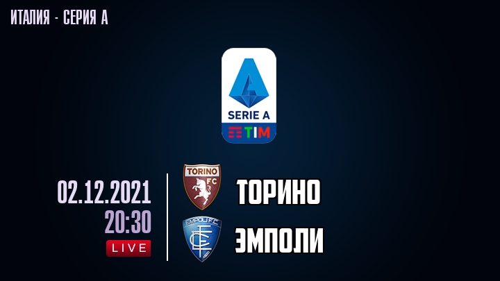 2 декабря 2021 года, мы предлагаем посмотреть онлайн трансляцию футбольного матча между футбольным клубом Торино и футбольным клубом Эмполи, проходящего в рамках Серии А чемпионата Италии.