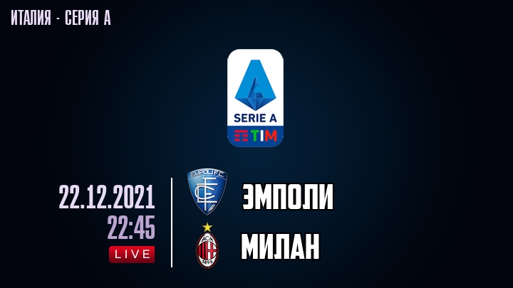 22 декабря 2021 года, состоялась онлайн трансляция футбольного матча между футбольным клубом Эмполи и футбольным клубом Милан, проходящего в рамках Серии А чемпионата Италии.