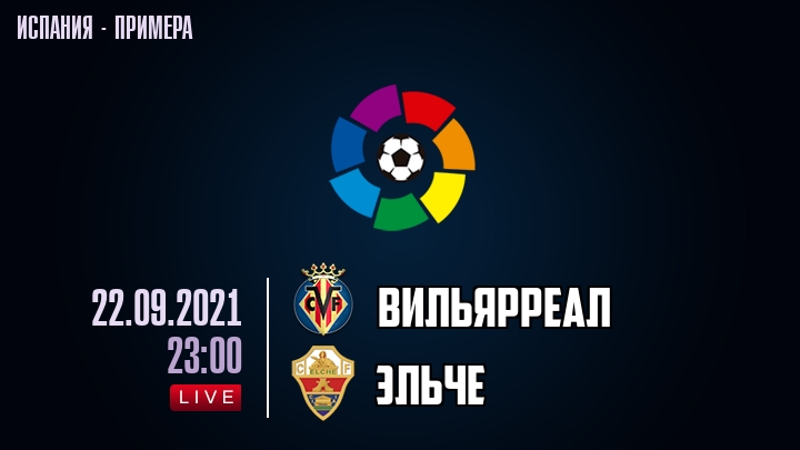 22 сентября 2021 года, состоялась онлайн трансляция футбольного матча между футбольным клубом Вильярреал и футбольным клубом Эльче, проходящего в рамках чемпионата Испании.